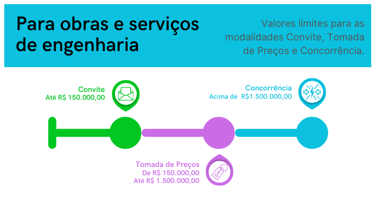 Para obras e serviços de engenharia: até R$ 1.500.000,00 (um milhão e quinhentos mil reais).